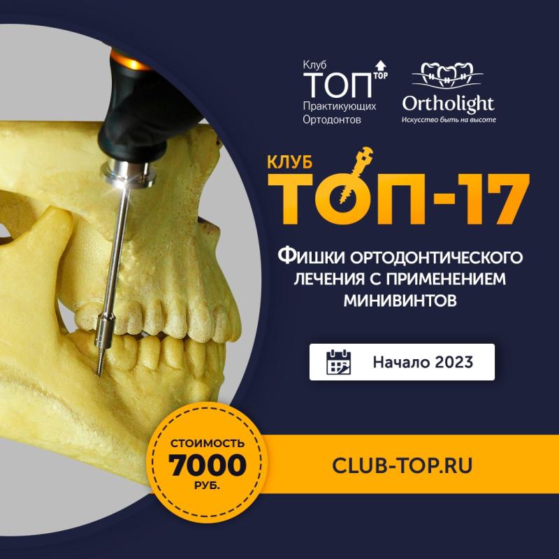 Тема встречи Клуба Практикующих Ортодонтов «ТОП-17» – «Фишки ортодонтического лечения с применением минивинтов». Анонсируем лекторов и темы докладов немного позже.