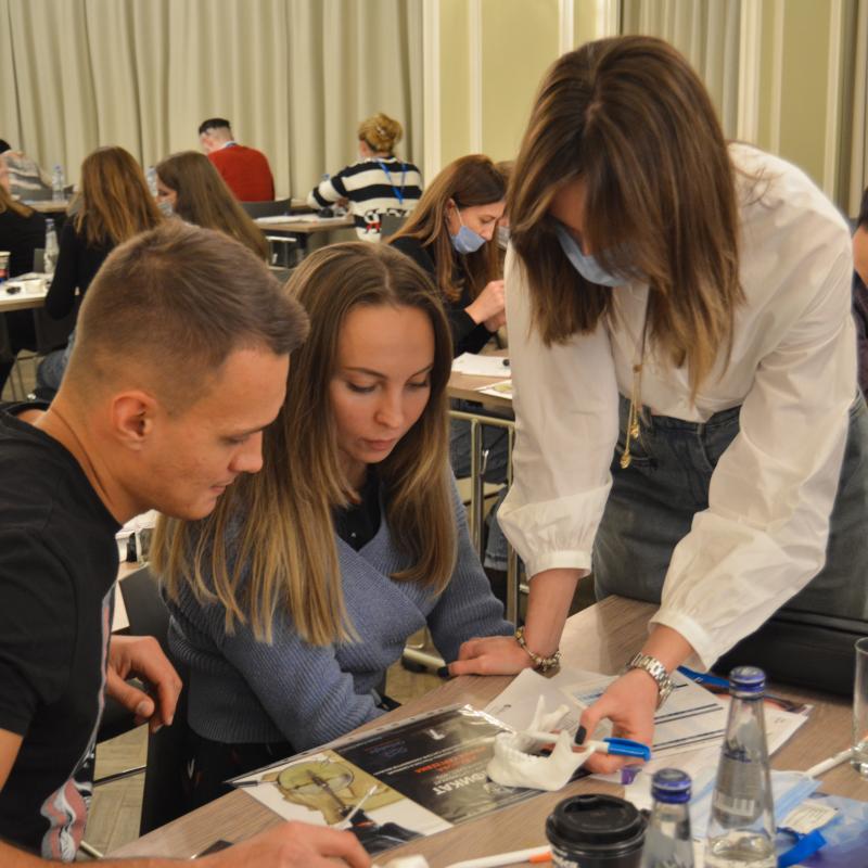 Всего более 60 докторов посетили это мероприятие. В программу вошли теория и практика техники постановки минивинтов. Вместе с анатомией челюстей и топографией анатомических образований, используемых при установке минивинтов, лектор провела живую демонстрацию.