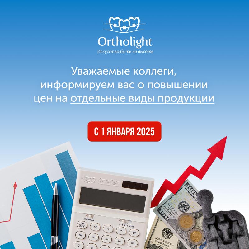 ООО «Ортолайт» благодарит Вас за сотрудничество и выражает признательность за доверие, оказанное нам и нашей продукции.Обращаем Ваше внимание, что в связи с общим уровнем инфляции, введением дополнительных налоговых поправок в законодательстве, с подорожанием логистических поставок и таможенных процедур, мы вынуждены повысить отпускные цены на некоторые позиции (расходные материалы для ортодонтического лечения) из прайс-листа с 01 января 2025 г.