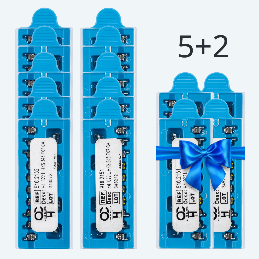 В комплекте 7 полных наборов брекетов H4, 7х7 (с щечными трубками).