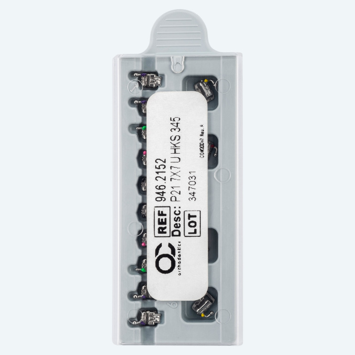 Высокоточное литье единым изделием брекета и его основания обеспечивает оптимальное расположение брекета по анатомии зуба и силу фиксации