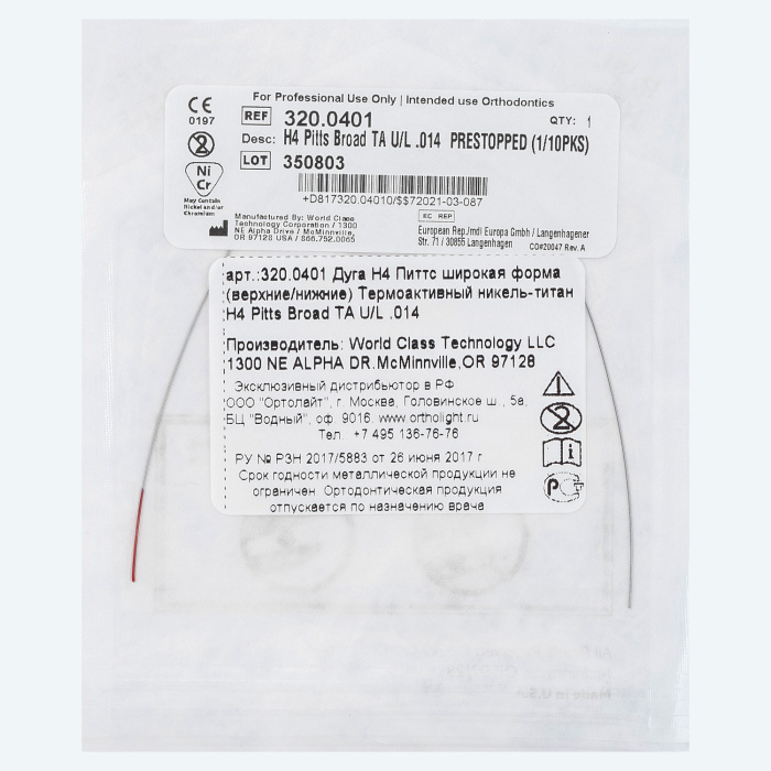 Дуги NiTi TA форма Питтса Широкая диаметр .014