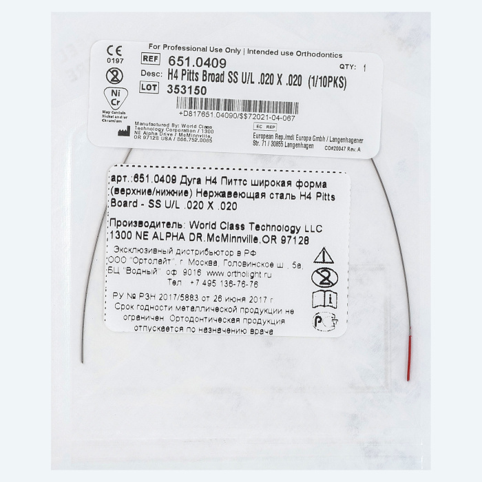 Дуга Сталь H4™ форма Питтса Широкая U/L .020 X .020
