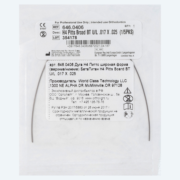 Дуга Бета-Титан H4™ форма Питтса широкая U/L .017 X .025