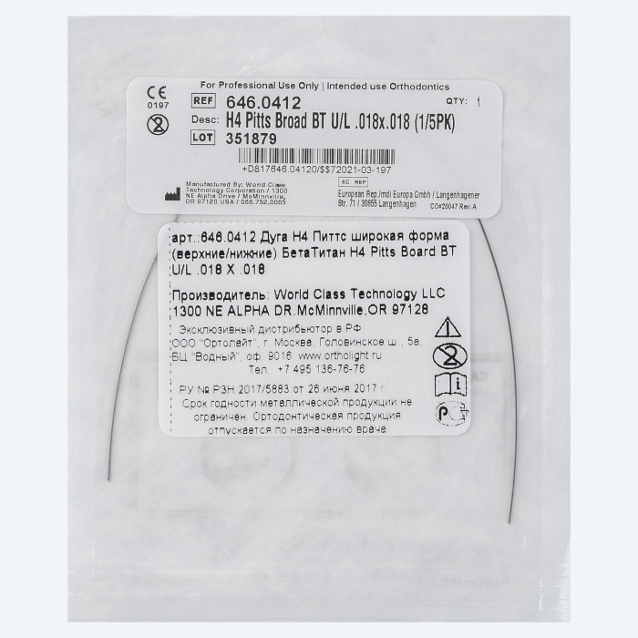 Дуга Бета-Титан H4™ форма Питтса широкая U/L .018 X .018