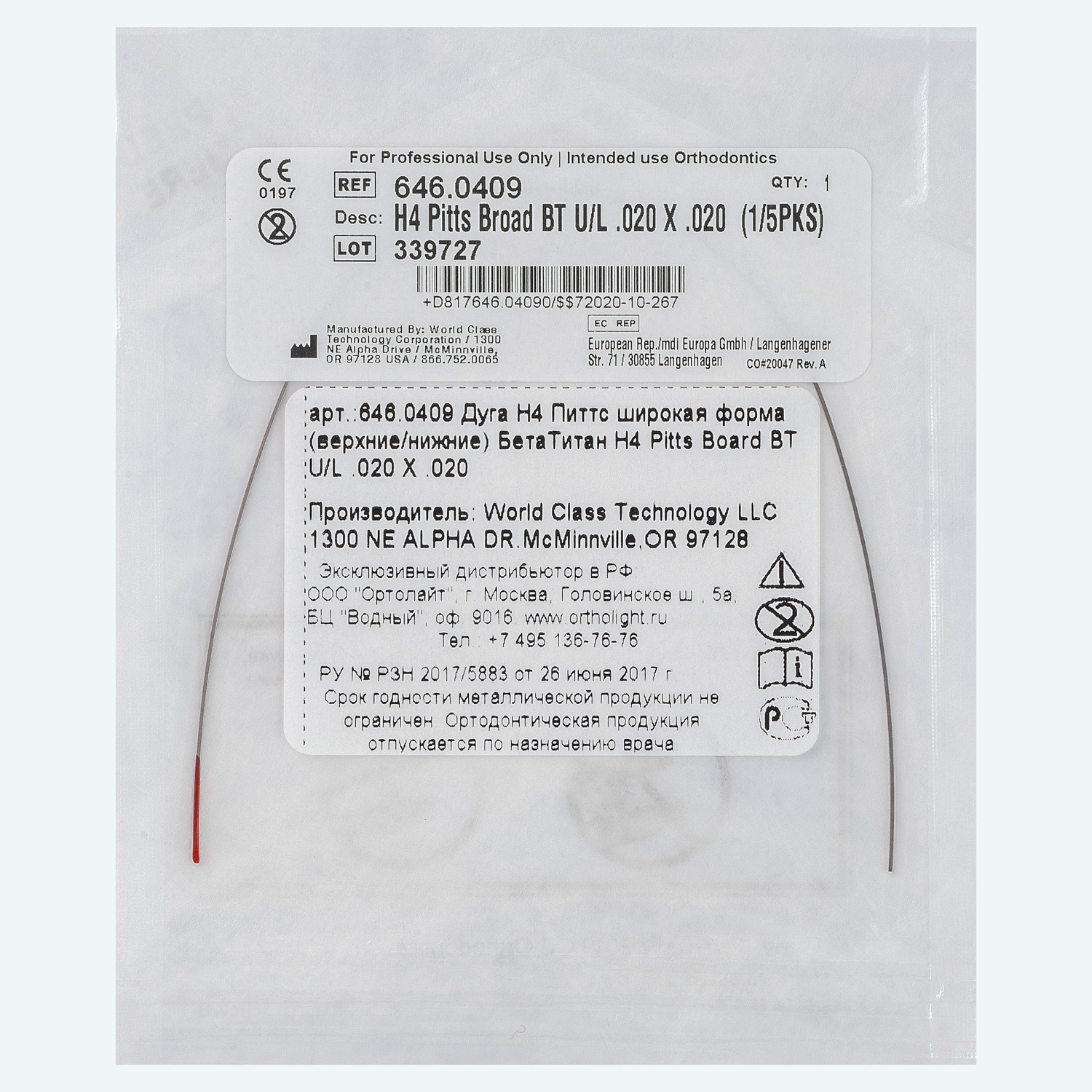 Дуга Бета-Титан H4™ форма Питтса широкая U/L .020 X .020