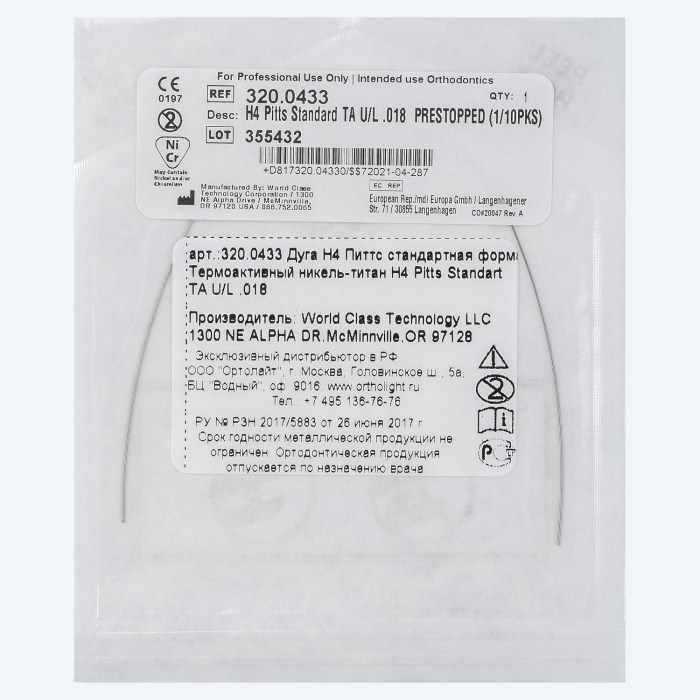 Дуги NiTi TA форма Питтса Стандартная диаметр .018