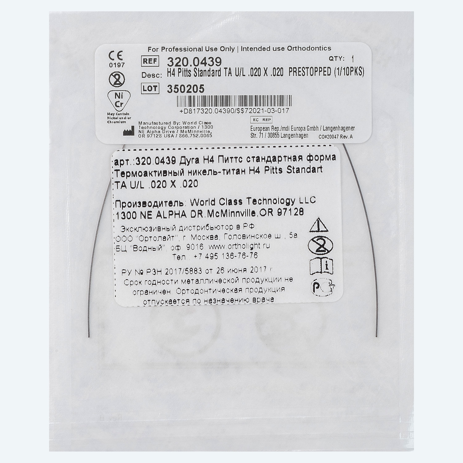 Дуги NiTi TA форма Питтса Стандартная .020x.020