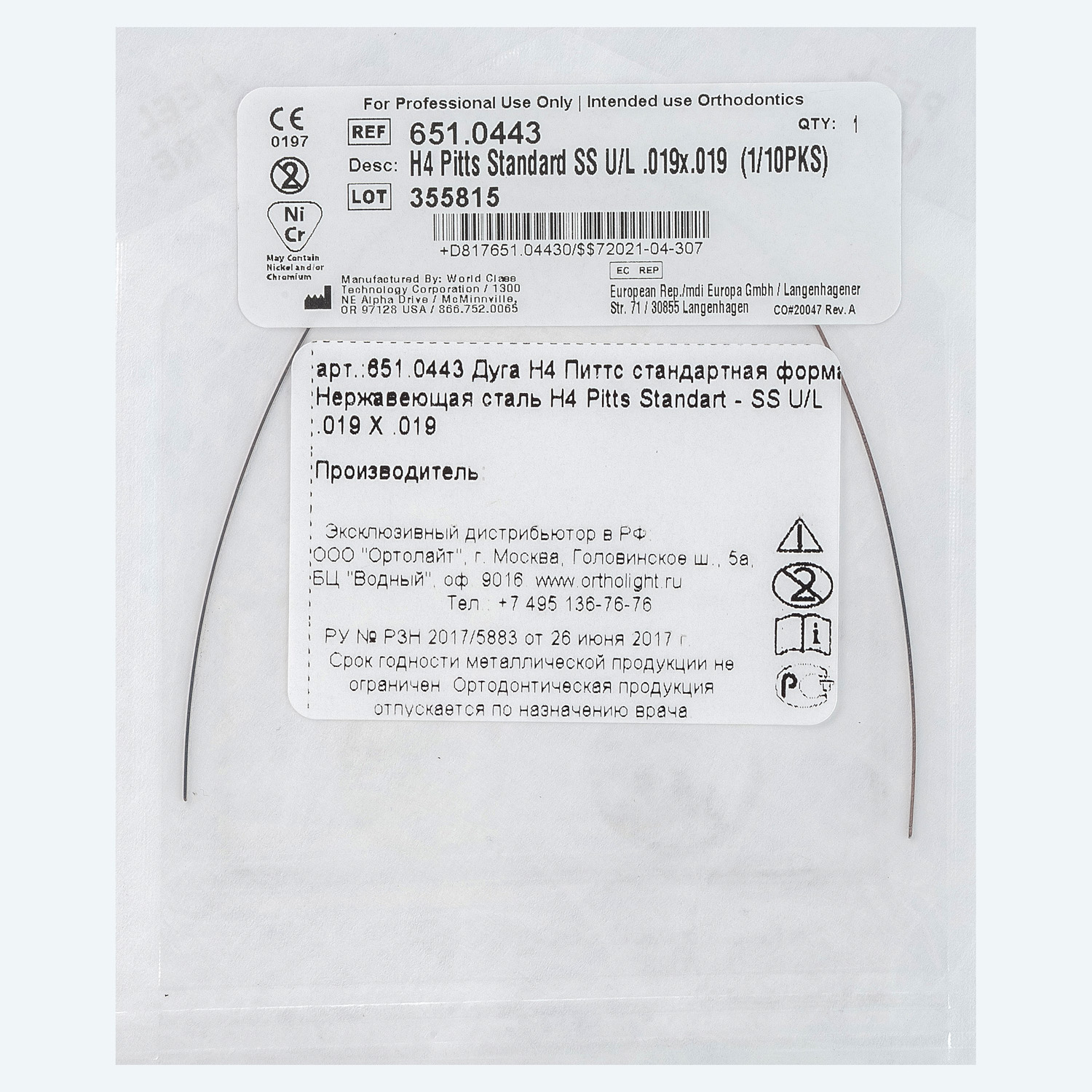 Дуга Сталь H4™ форма Питтса Стандартная U/L .019 X .019