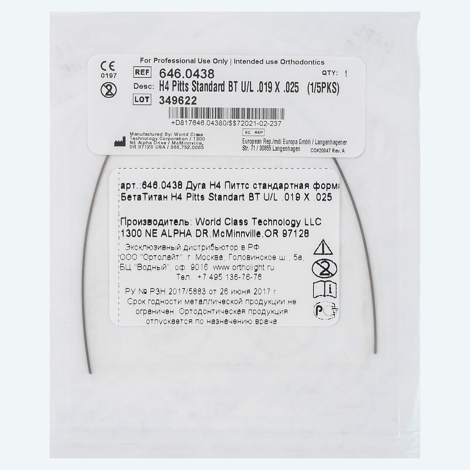 Дуга Бета-Титан H4™ форма Питтса Стандартная U/L .019 X .025