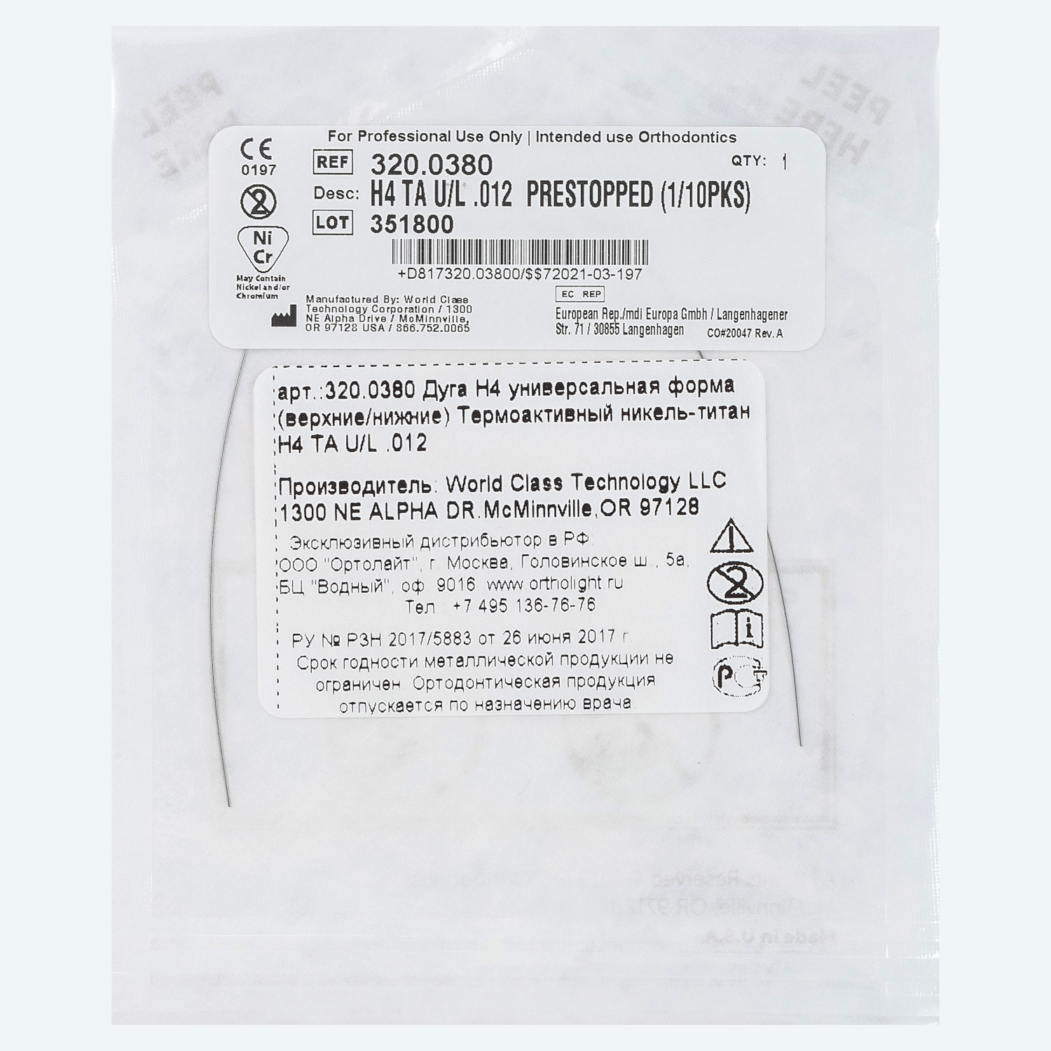Дуги NiTi TA H4™ диаметр .012