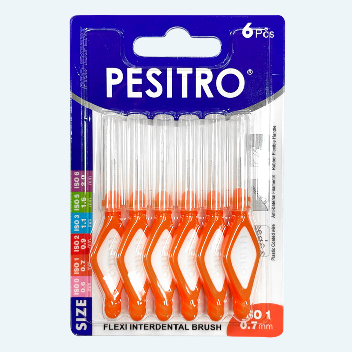 Ершики способствуют легкой и эффективной профилактике кариеса, гингивита и пародонтита. Достоинствами межзубных ершиков Pesitro являются: - Высокая гибкость, что дает возможность вычистить отдаленные и труднодоступные участки полости рта. - Прекрасно подходят людям, с наличием имплантатов, мостов и брекетов. - Межзубные ершики массируют десны, улучшая в них кровоток, препятствуя таким образом развитию многих стоматологических заболеваний. - Сертифицированная продукция. В одной упаковке: 6 шт.