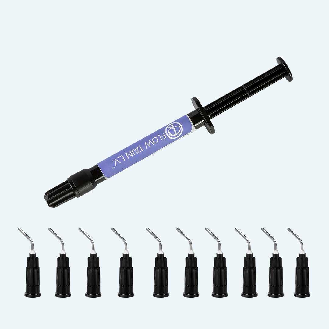 Композит обладает высокой полируемостью, что приводит к повышению износостойкости и повышает комфорт пациента. После отверждения обладает низким модулем упругости и не так хрупок, как обычные композиты. Несмотря на то, что Flow Tain является текучим материалом, тиксотропные свойства предотвращают усадку материала для лучшего контроля ретенции. С помощью прилагаемых наконечников Flow Tain легко вводится на лингвальные