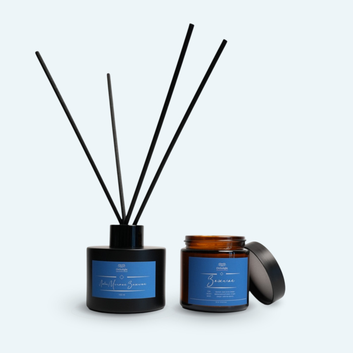 Состав набора: Диффузор «Тайна уюта» + подарочная свеча  Ortholight на выбор («Мечтай» / »Люби» / «Зажигай»)