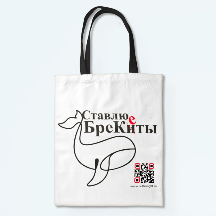 Сумка-шопер с креативным и вызывающим добрую улыбку принтом "Ставлю брекеты".