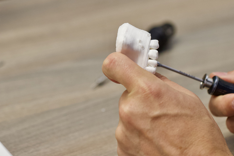 - Отработка базовых принципов прямого и непрямого метода установки минивинтов на специальном бруске.